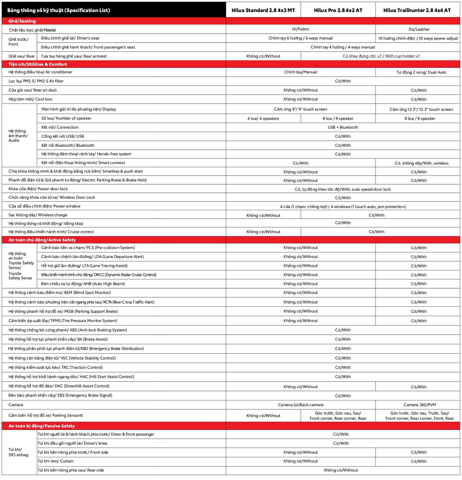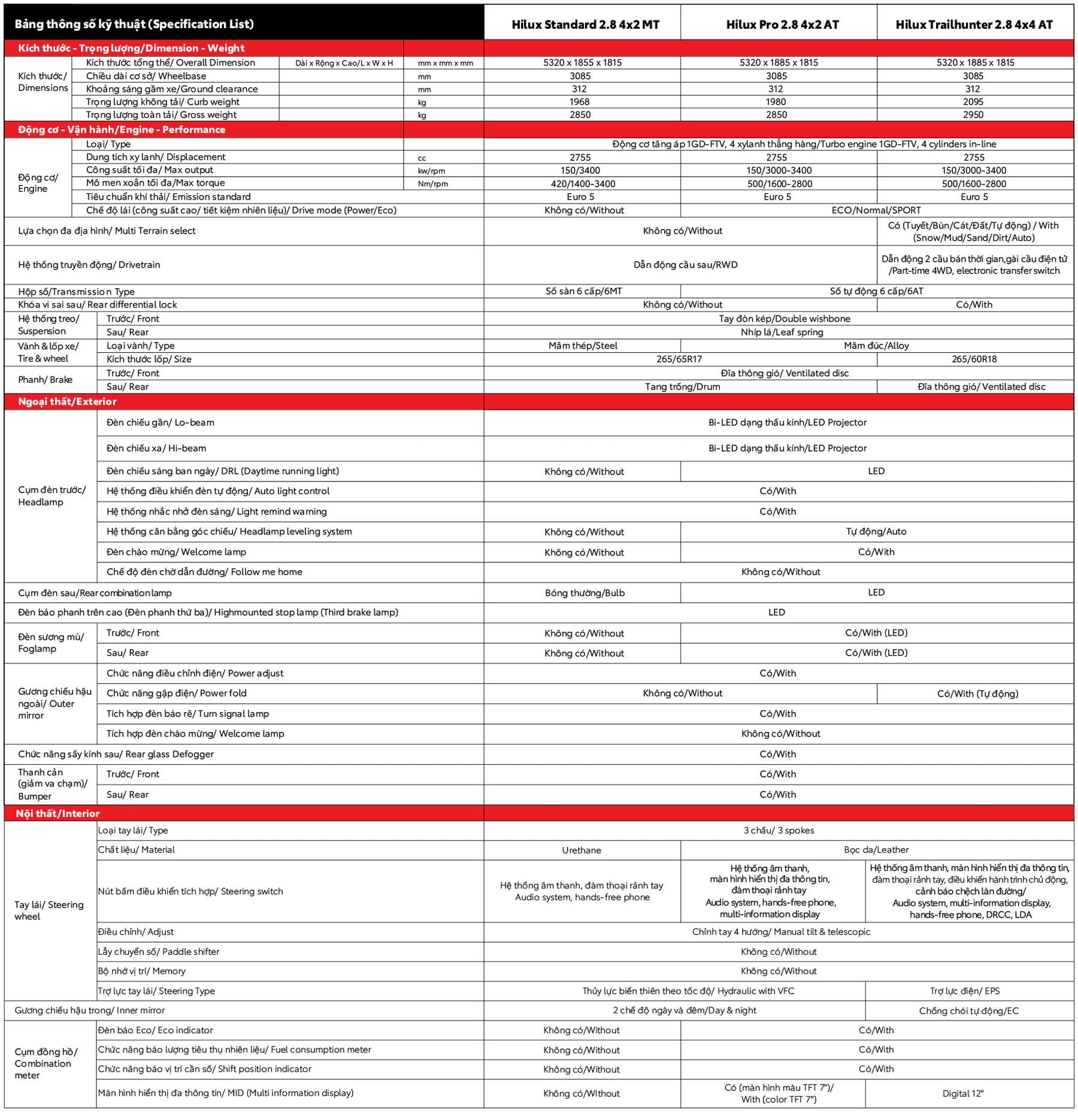 • HILUX TRAILHUNTER 2.8 4×4 AT: 903.000.000 VNĐ